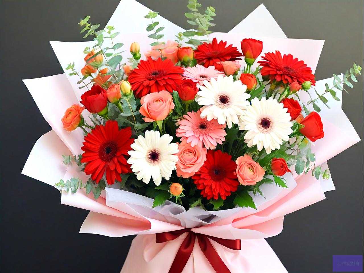 康乃馨 + 满天星 :满天星花语是 “永远的爱”“幸福美满”,与康乃馨搭配,既能突出康乃馨表达的敬意和关爱,又能增添花束的浪漫氛围和丰富度,寓意着对老人的爱永远不变,希望老人幸福安康。