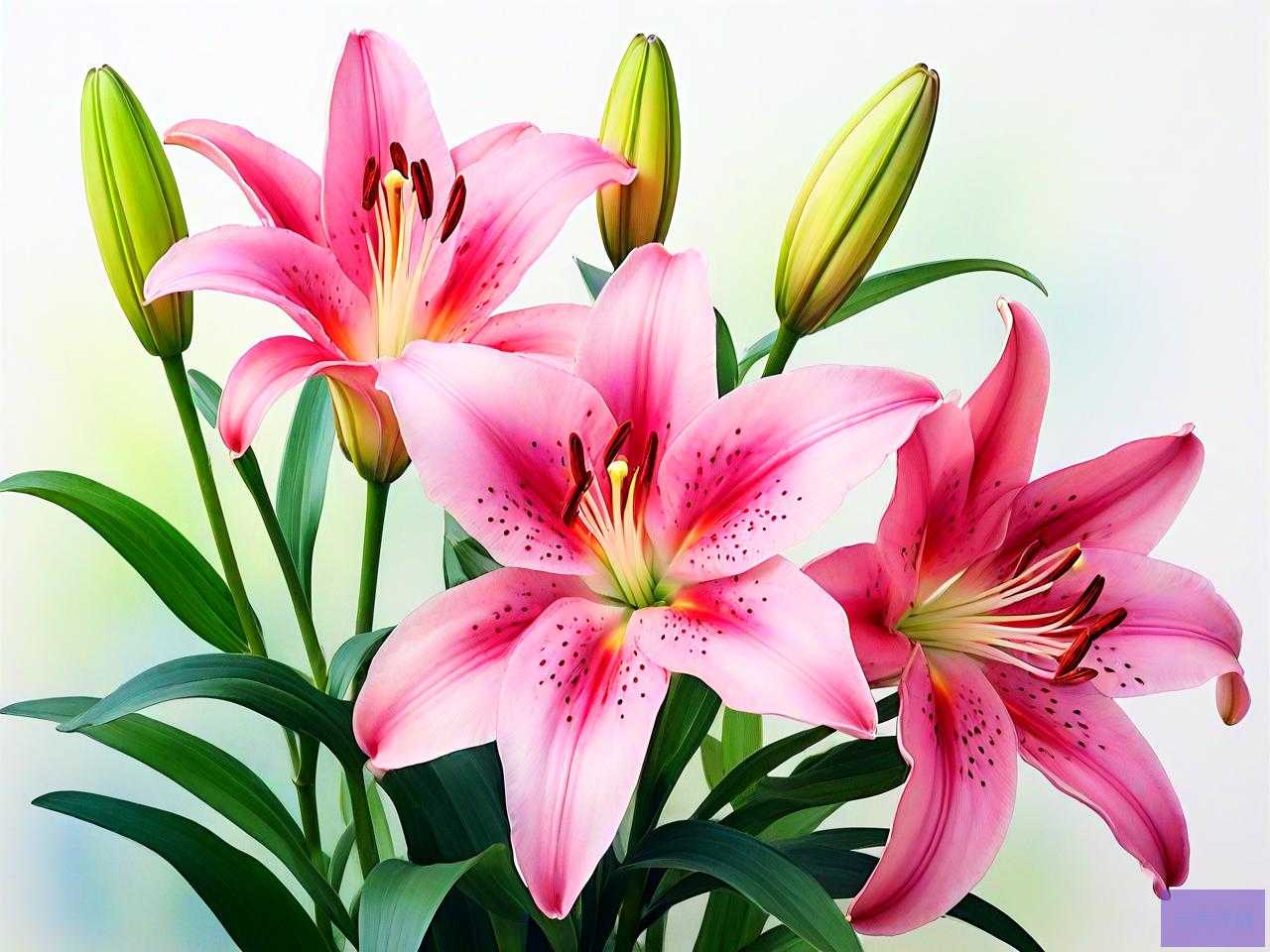上午:上午十点左右,阳光正好,百合花宛如活泼的舞者,在微风的邀请下,欣然张开那优雅的裙摆,尽情展示自己的美丽。